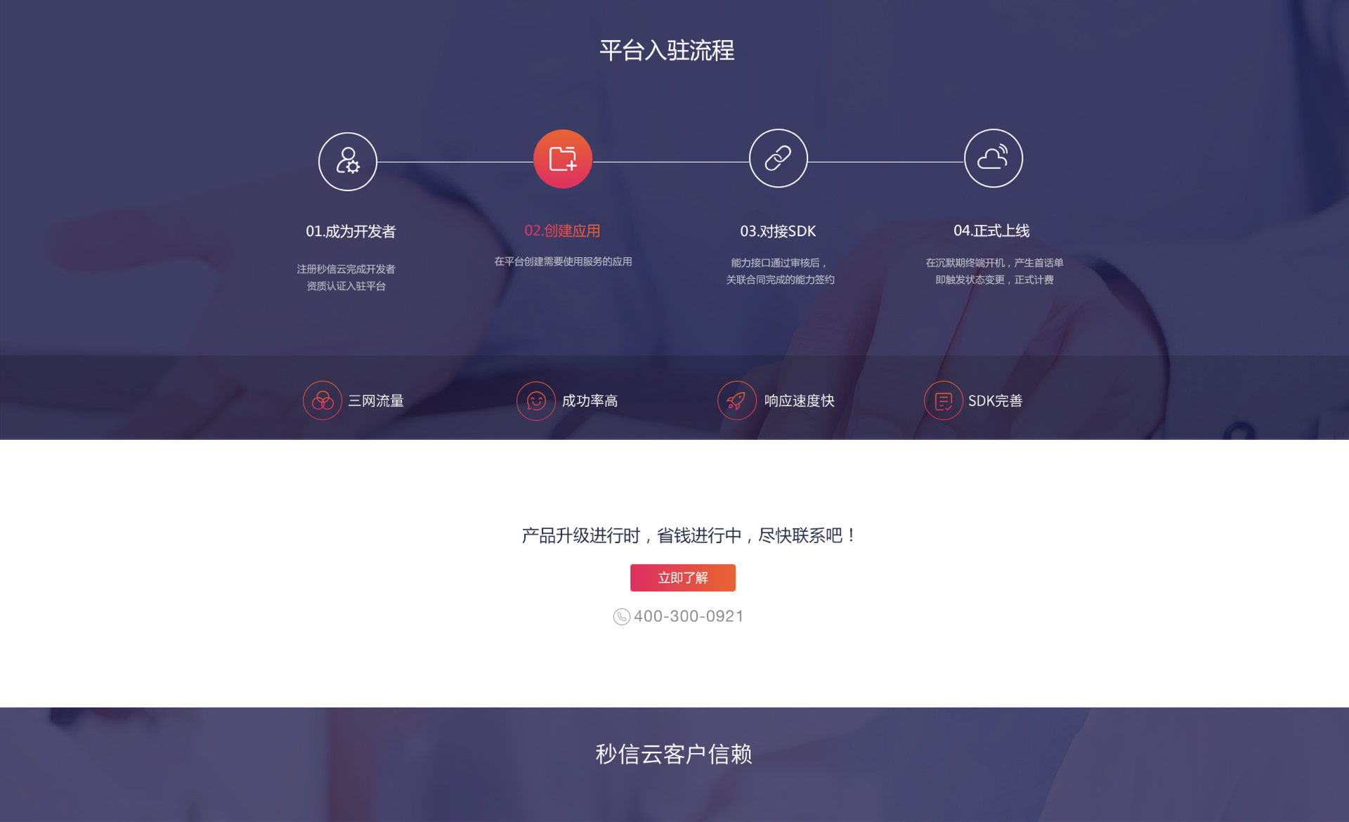 和與德為秒信云打造的官網突出了企業的開放性,安全性的工業互聯網平臺的形象。整體網頁設計風格采用扁平化的設計手法,網頁布局排版也突破傳統,更加簡潔大氣;符合企業的物聯網,大數據等產品調性;體現出秒信云平臺的專業性,便捷性。